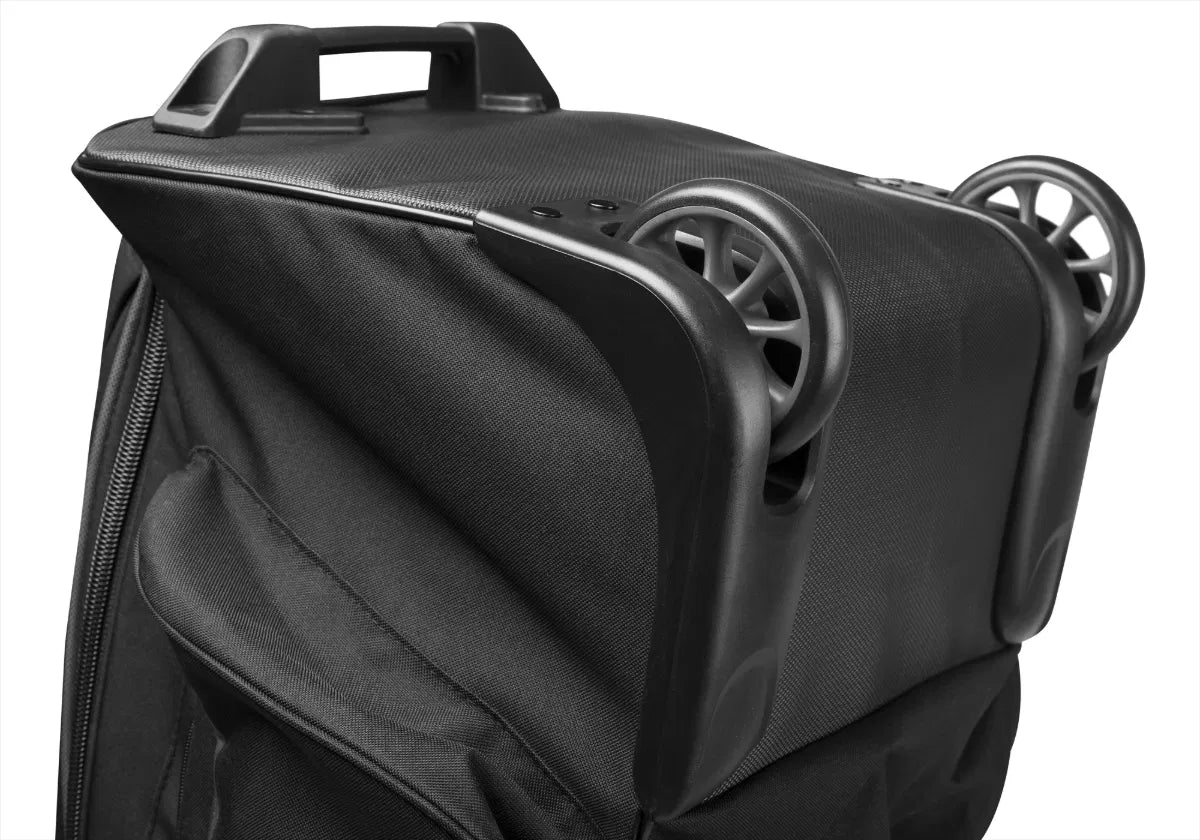 Le ruote tipo “skate” assicurano un movimento fluido, mentre le cinghie interne di compressione mantengono la sacca stabile.